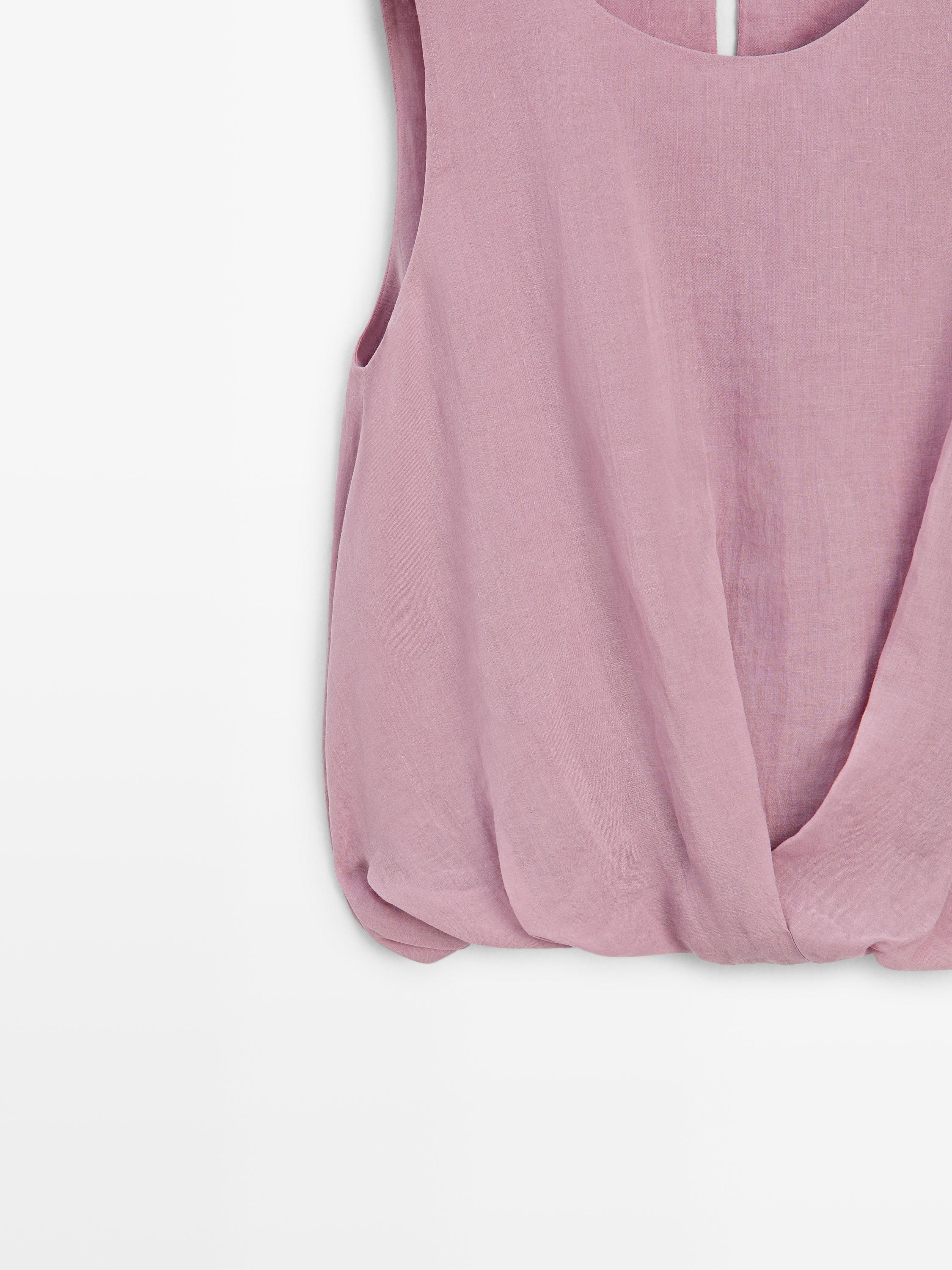 Top made of ramie fabric. Crew neck. Back button fastening and teardrop opening.