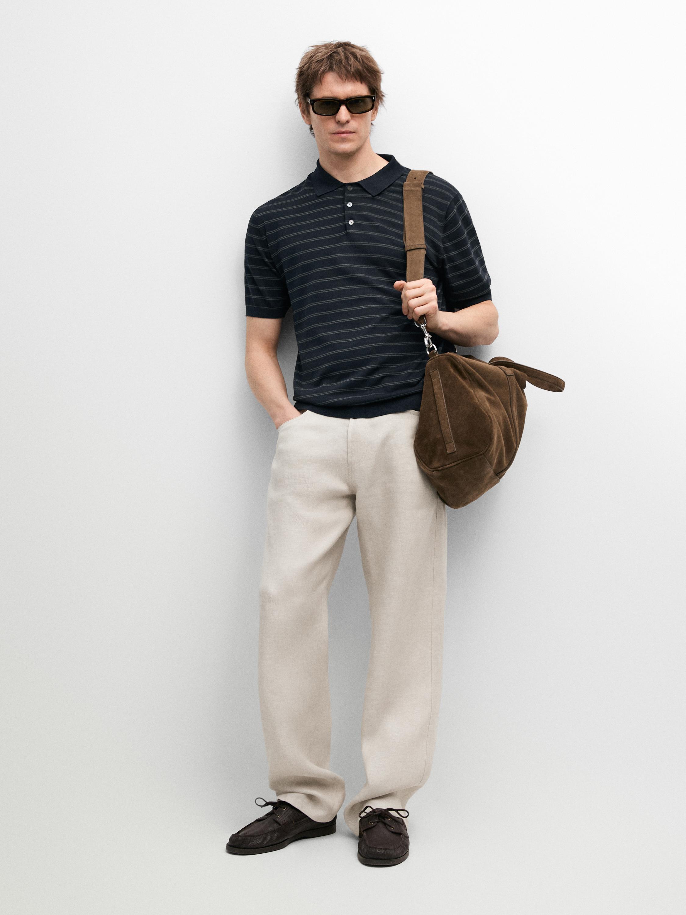 Dzianinowa koszulka polo z bawełną i detalami w paski