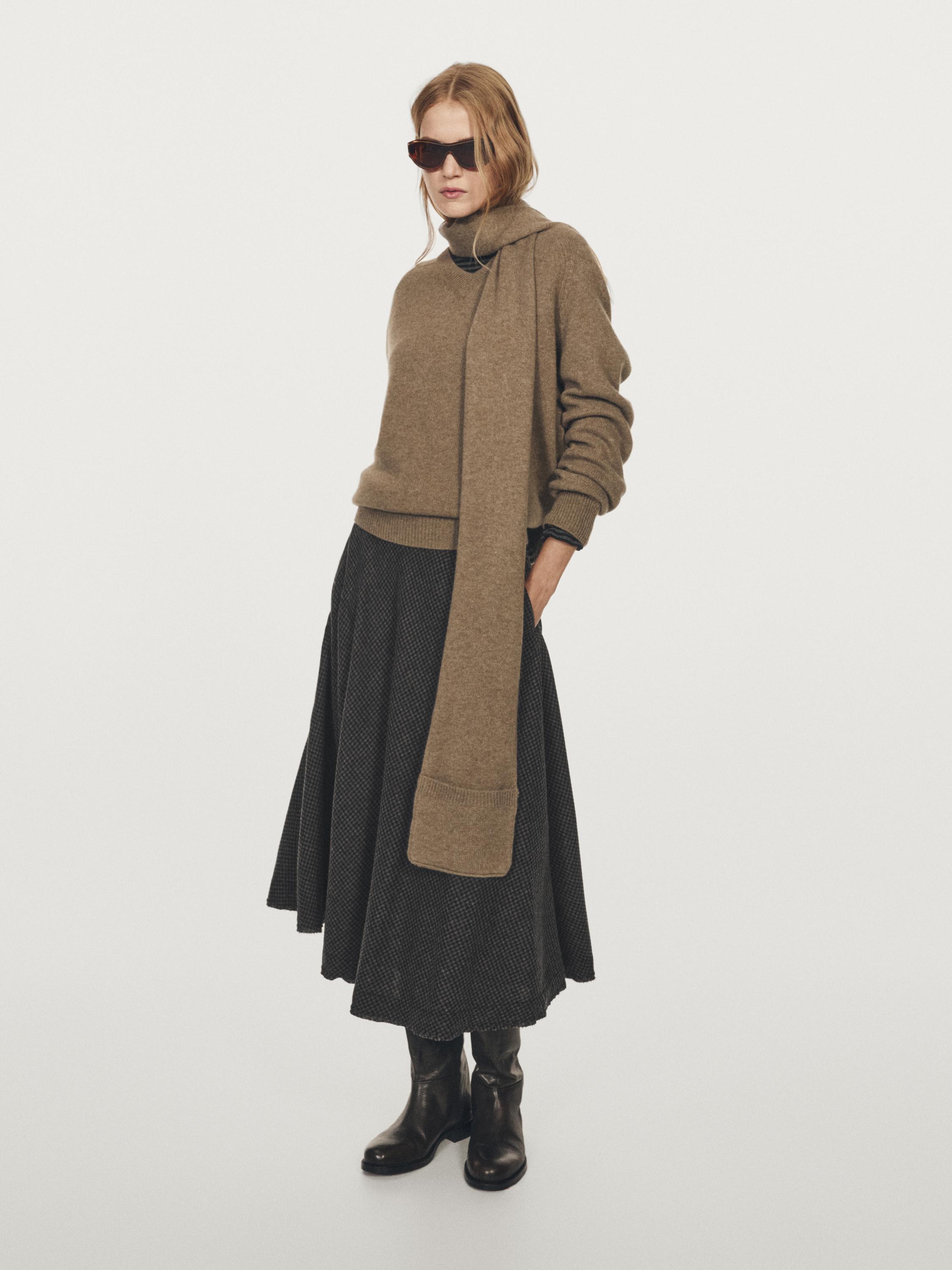 Dzianinowy sweter ze 100% wełny z szalikiem i kieszenią