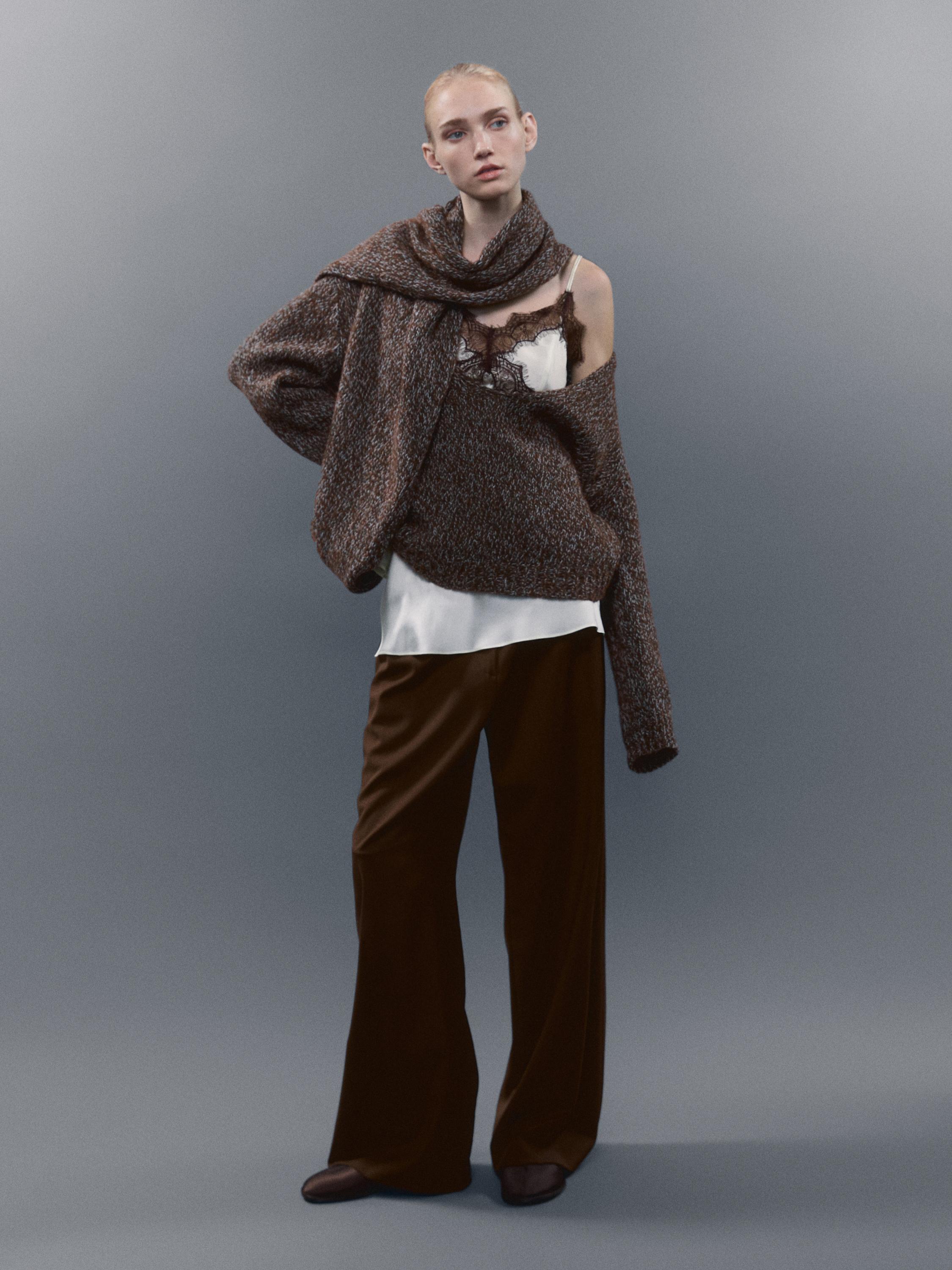Dzianinowy sweter z dekoltem w serek i szalikiem − STUDIO