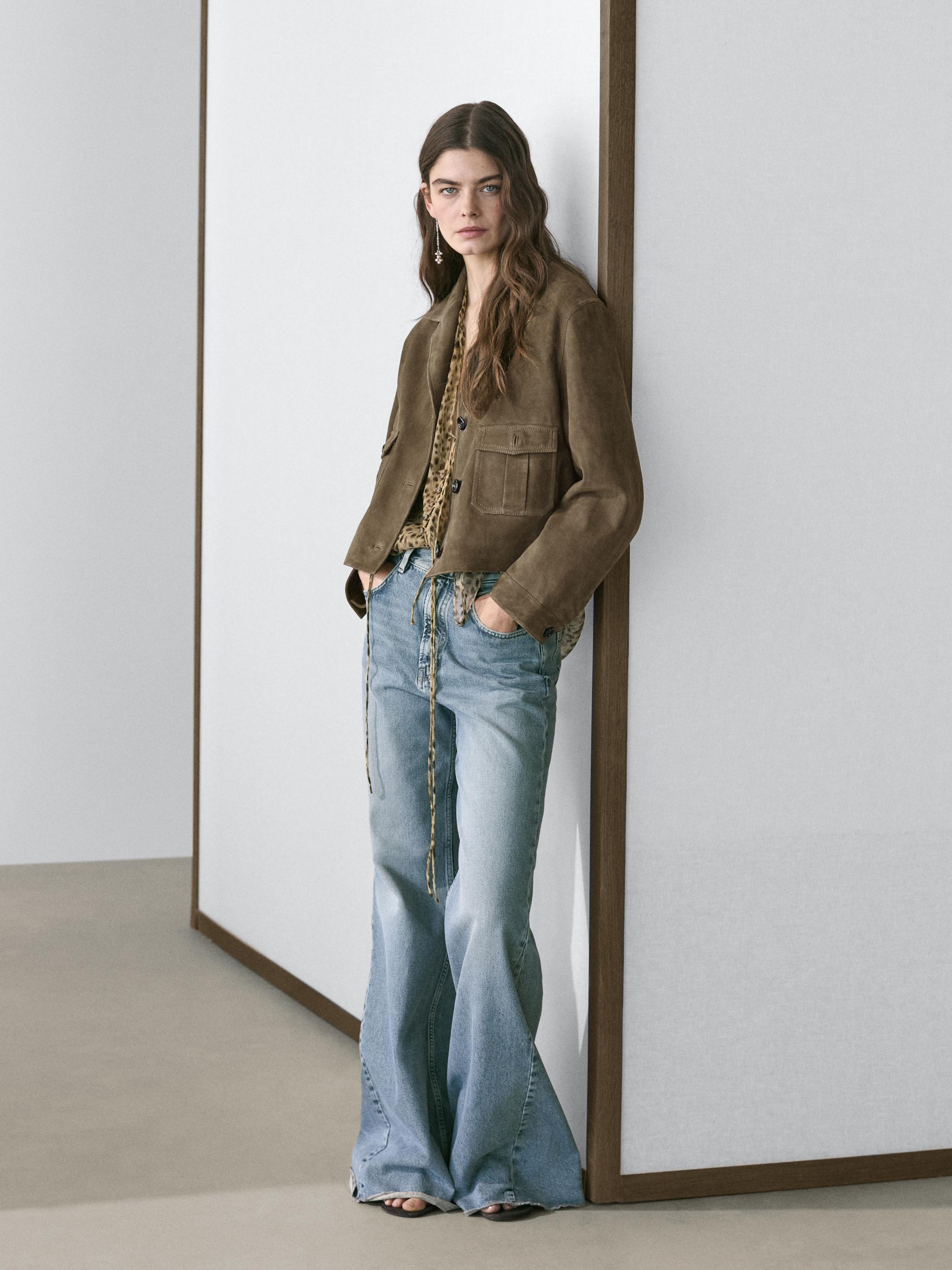 Casaco curto de pele camurça