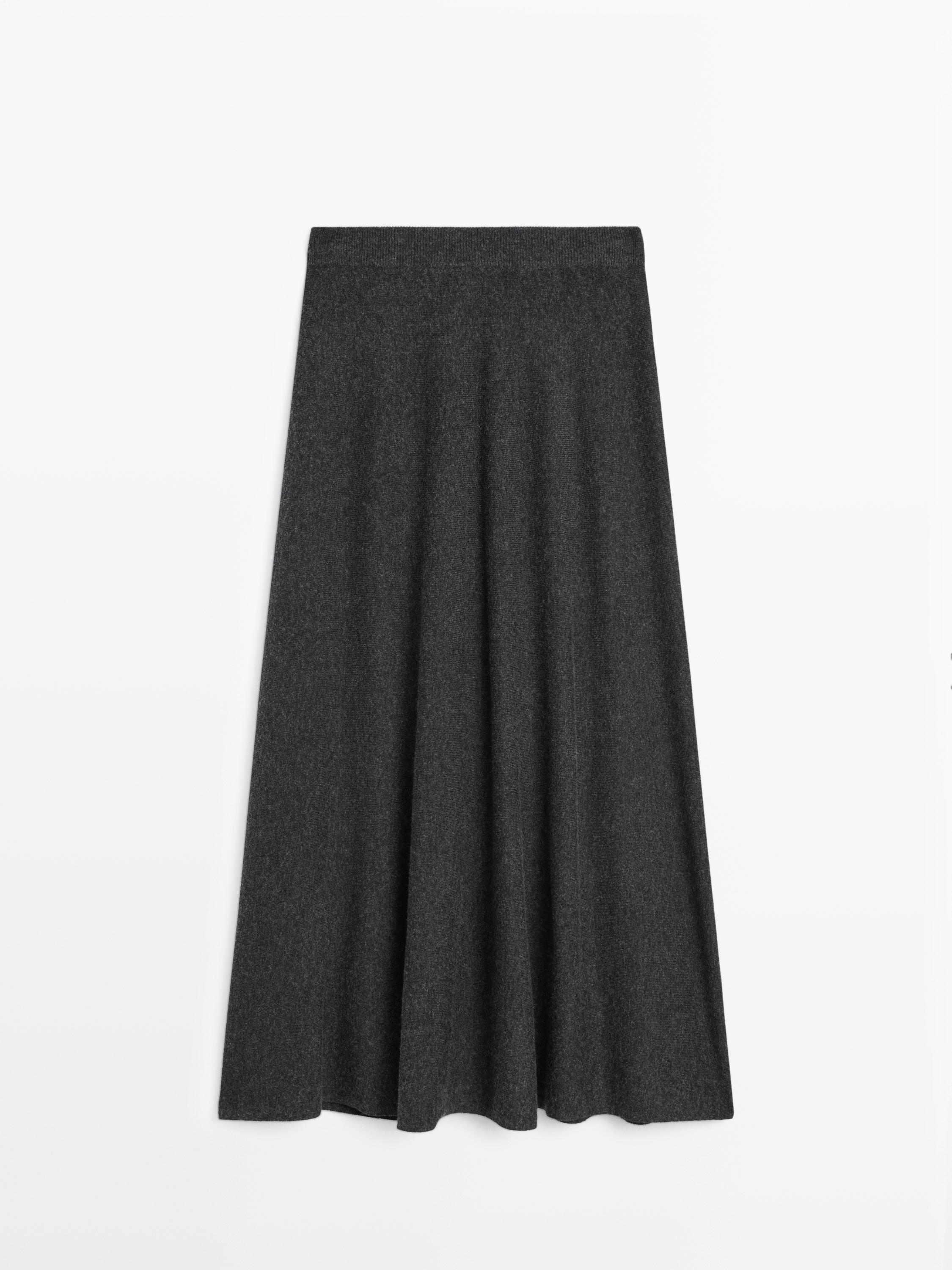 Saia comprida confecionada em tecido de malha com fazenda . Saia comprida de corte evasé. Pormenor de cós com elástico. Confecionado com fazenda. Dispõe de peça de roupa a condizer.