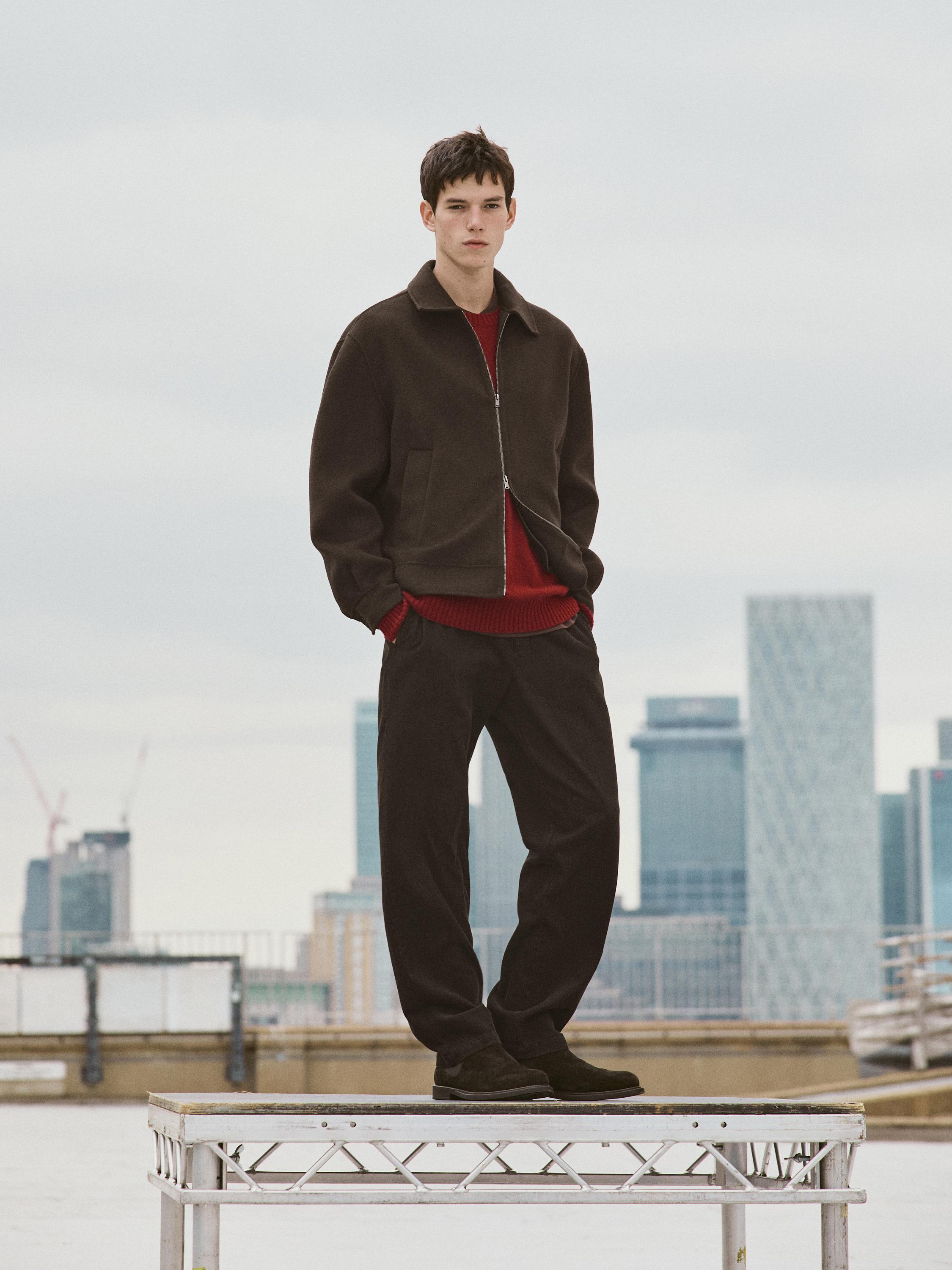 Blusão com pormenor de fecho de correr em mistura de fazenda