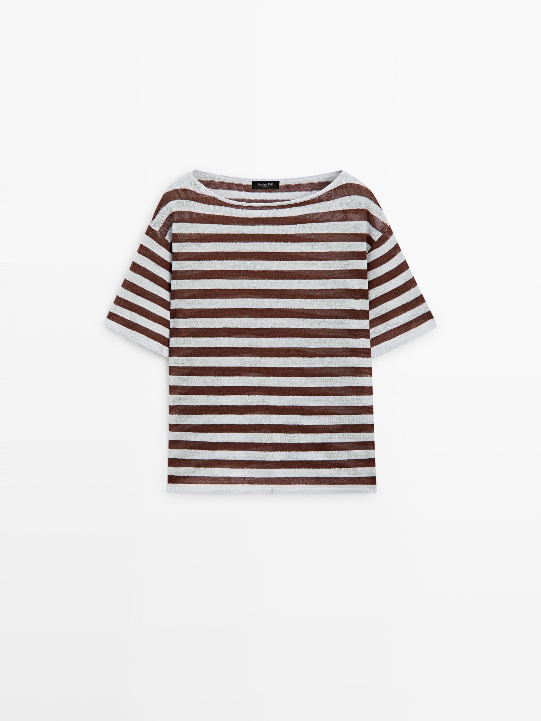 NOVO Ver aparência T-shirt de decote barco às riscas em linho 39,95 € Cor: Celeste Adicionar ao cesto