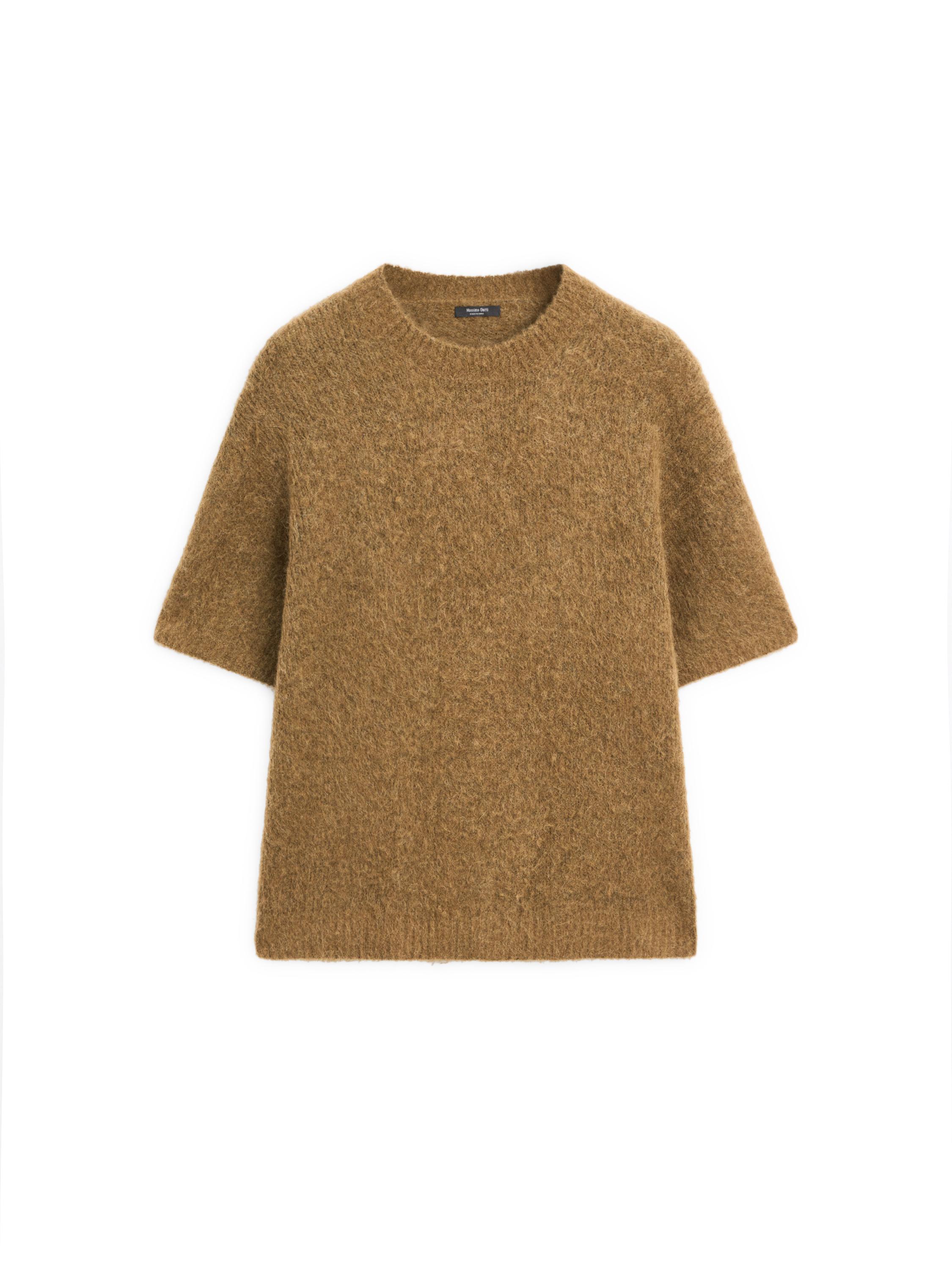سويتر محاك مصنوع من مزيج الصوف والألبكة. ياقة دائرية دون طوق. أكمام قصيرة. شريط حاشية مضلع .
