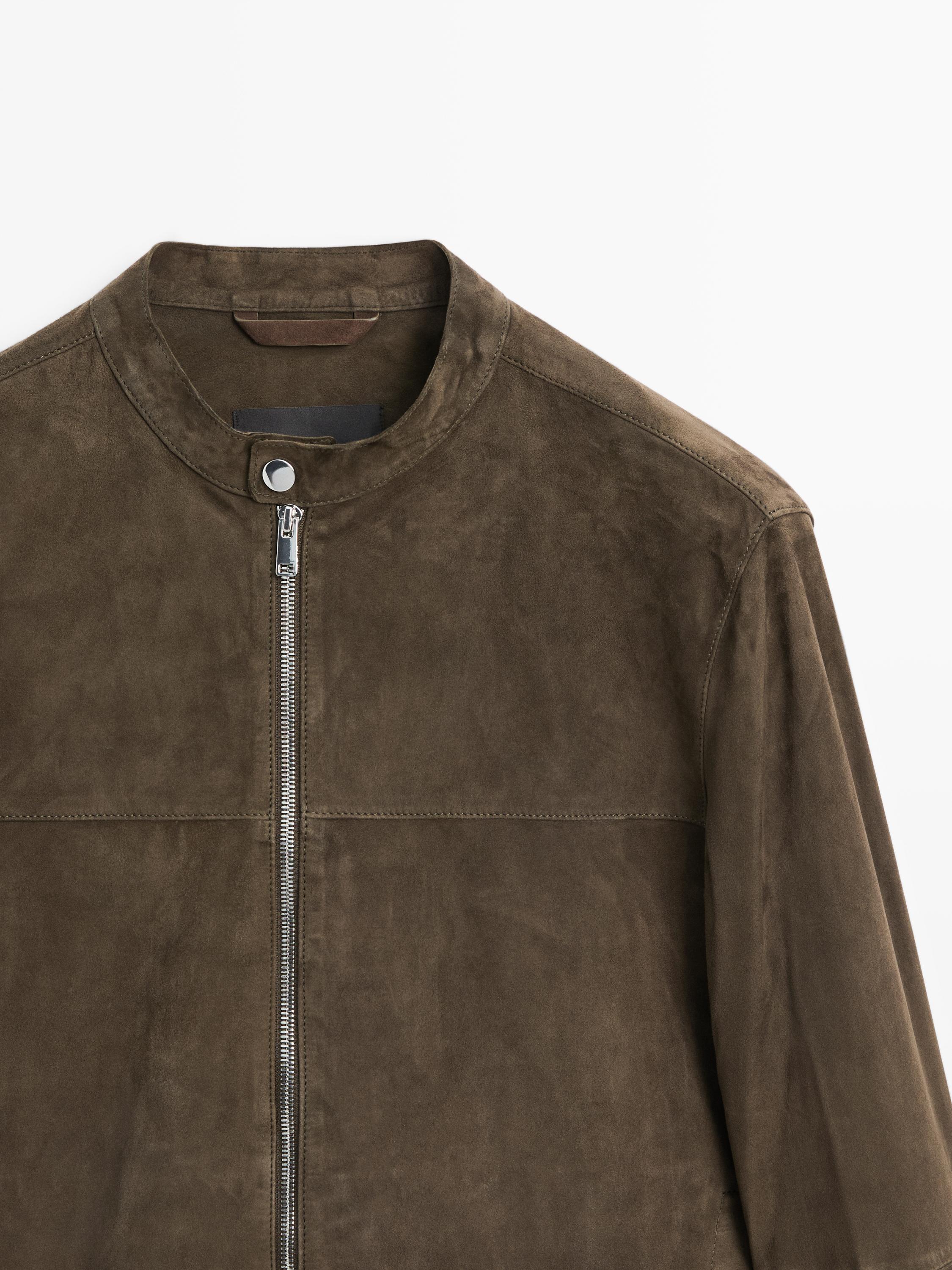 جاكيت مصنوع من جلد الماعز. ياقة عالية مع زر كبس بأشرطة تثبيت. أكمام طويلة بأساور بزر كبس. Metal zip fastener. جيوب على الجانبين.