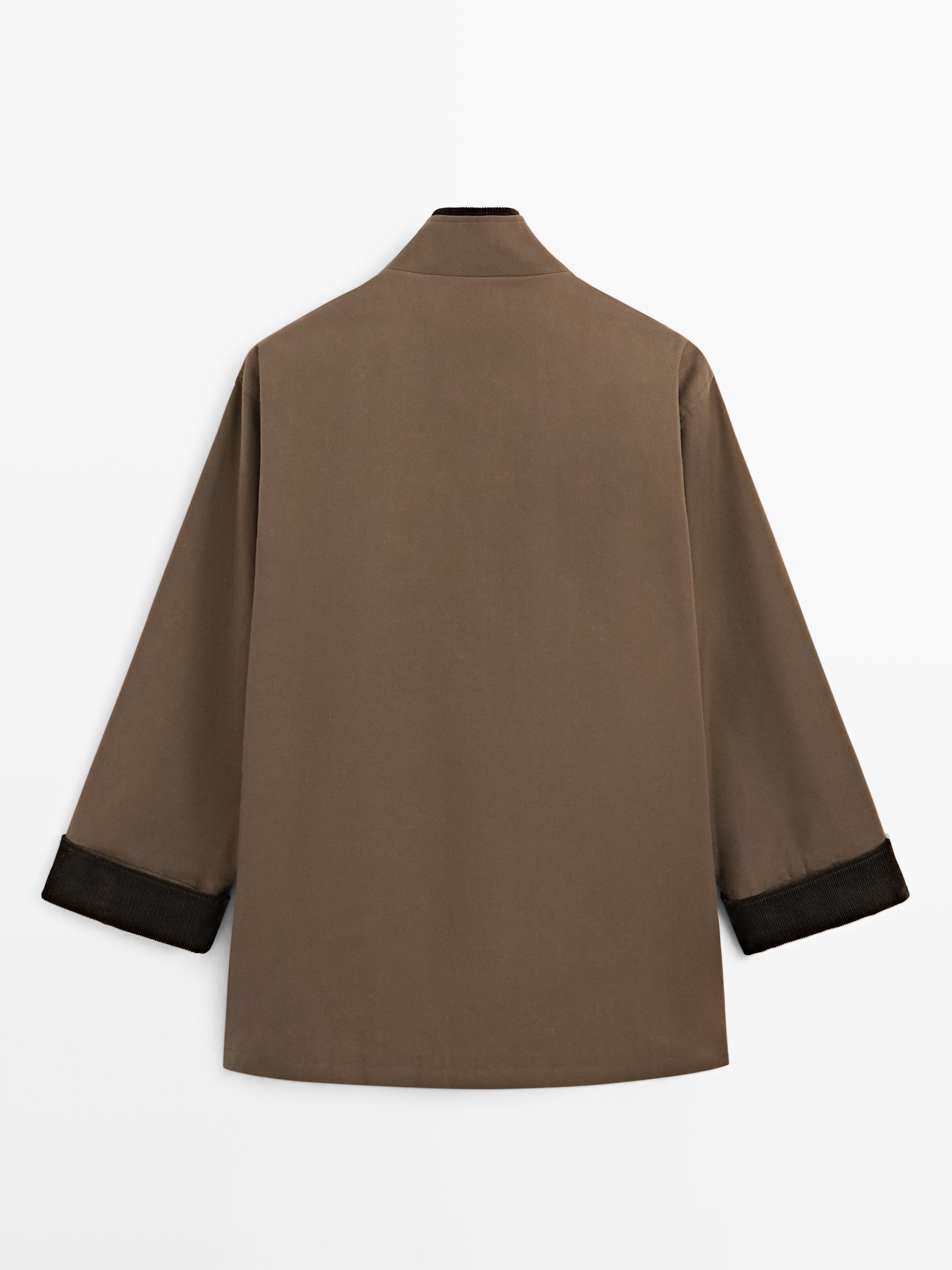 معطف باركا مشمع بياقة عالية بتفصيل كوردروي