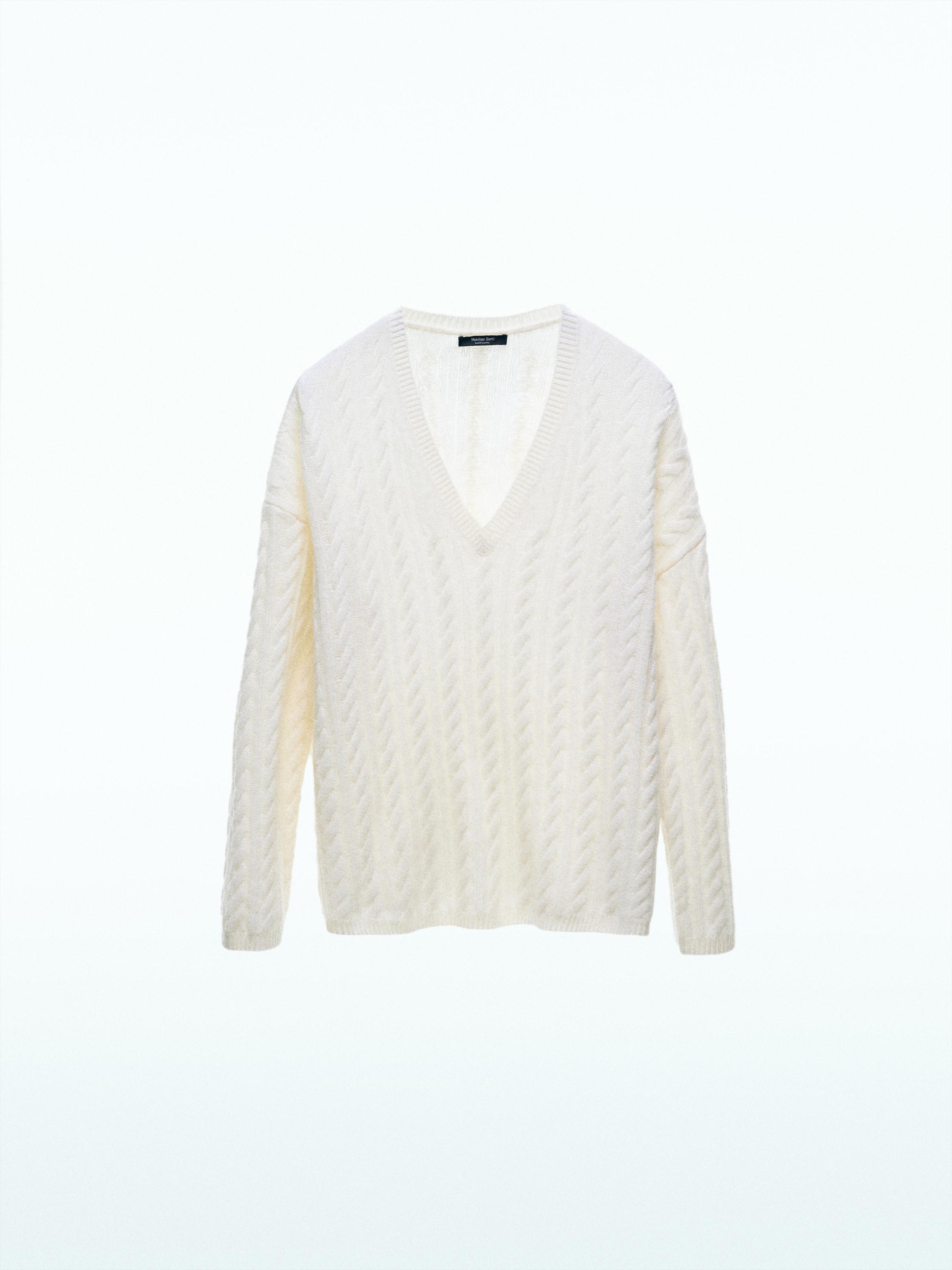 سويتر بحياكة مجدولة وفتحة صدر على شكل V