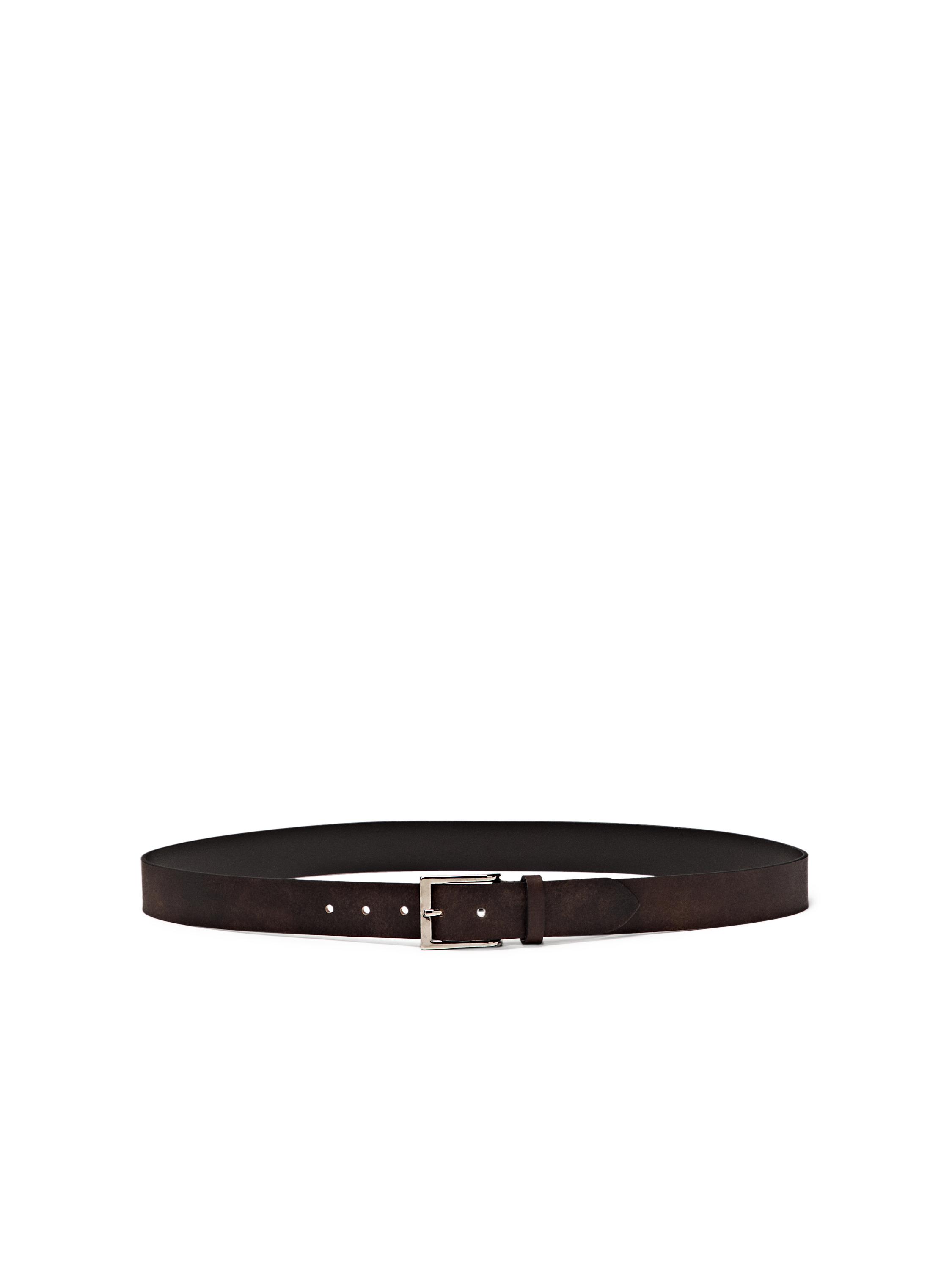 Belt made of bovine leather. عرض 3.5 سم. إبزيم معدني مستطيل . تأثير مهترئ.
