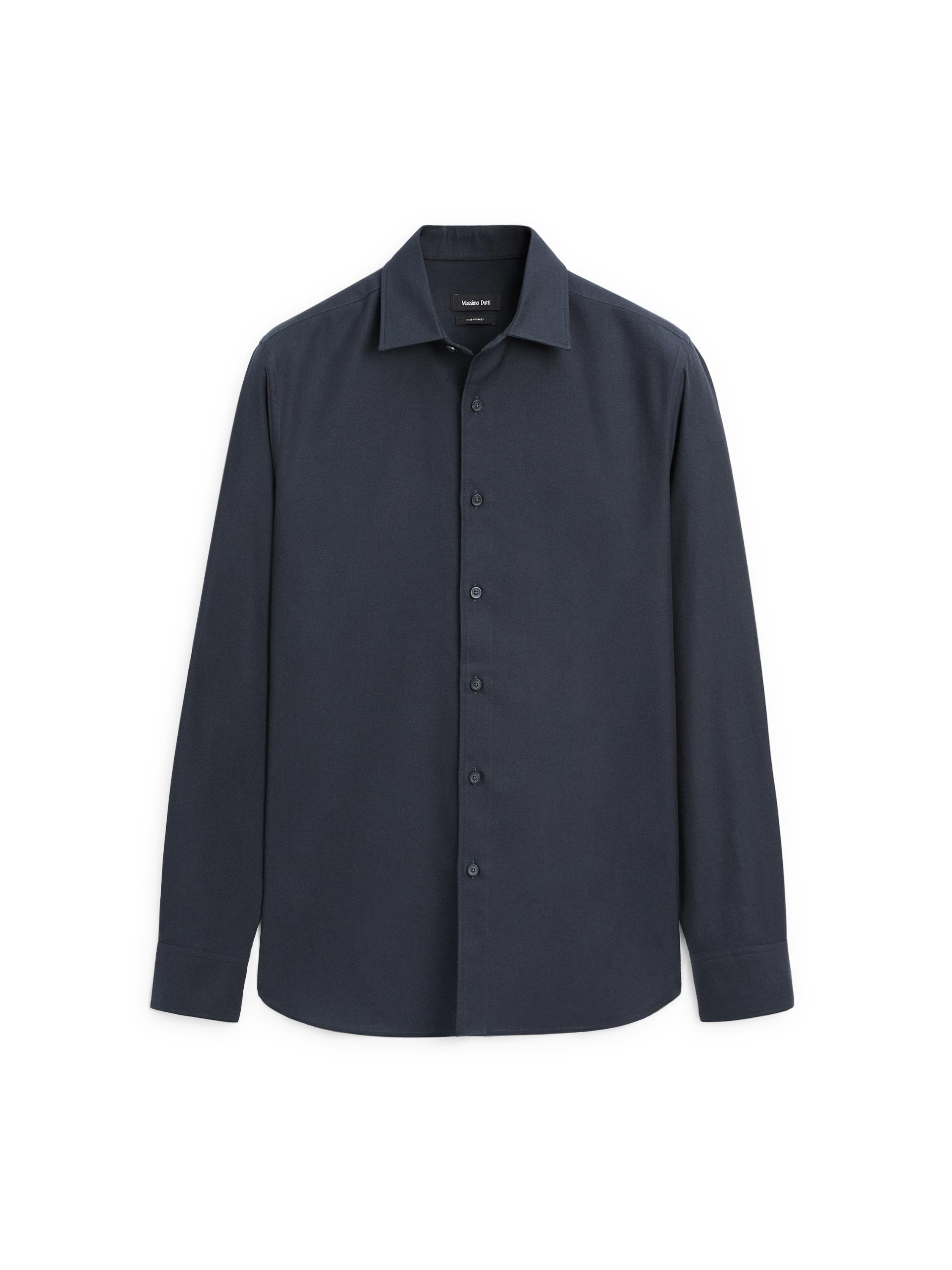 قصة عادية: توفر هذه القصة الراحة مع مساحة أكبر قليلاً عند منطقة الجذع والذراعين، مما يمنح مظهراً كلاسيكياً ومريحاً. طوق قميص. أكمام طويلة. زر علوي أمامي. مصنوع 100% من قماش قطني.
