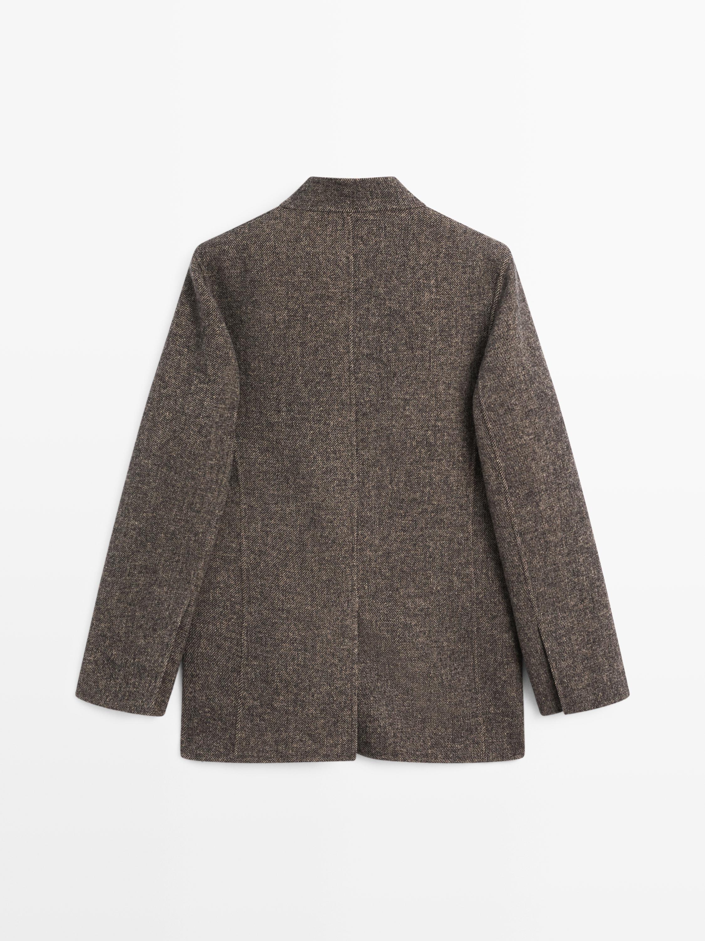 معطف مصنوع من قماش صوف مخلوط . أكمام طويلة. زر أمامي للإغلاق مخفي بشريط. ياقة عالية بأزرار. جيبان بغطاء. جيب دون أزرار على الصدر. فتحة خلفية في المنتصف.