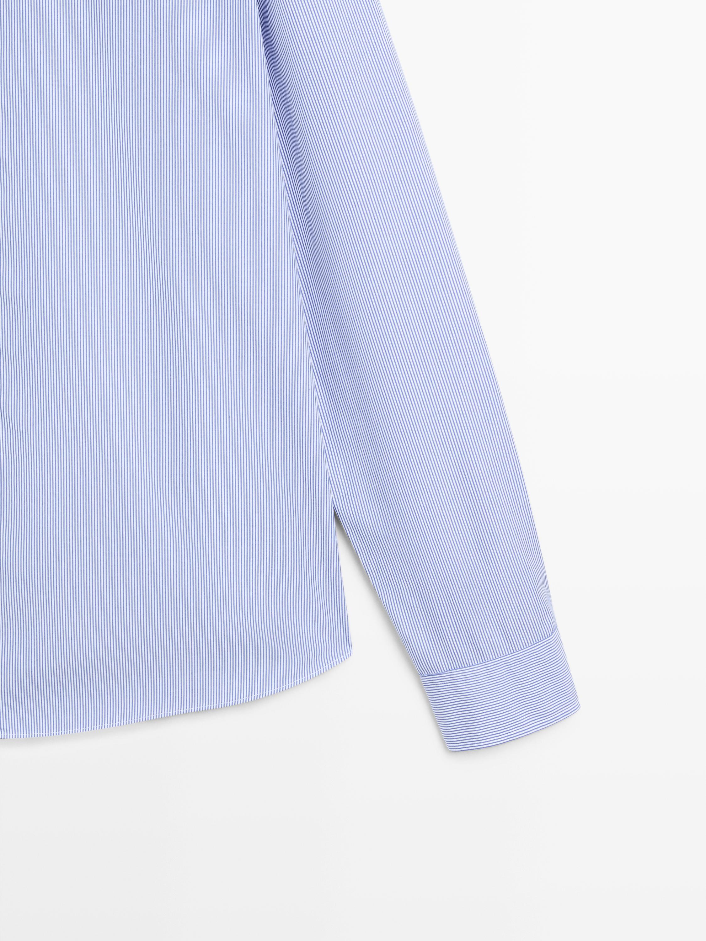 Regular fit: This fit offers comfort with a bit more room in the torso and arms, providing a classic, yet relaxed style. Long sleeves with buttoned cuffs. Oxford collar. Button-up front. Striped detail. Made of 100% cotton fabric.