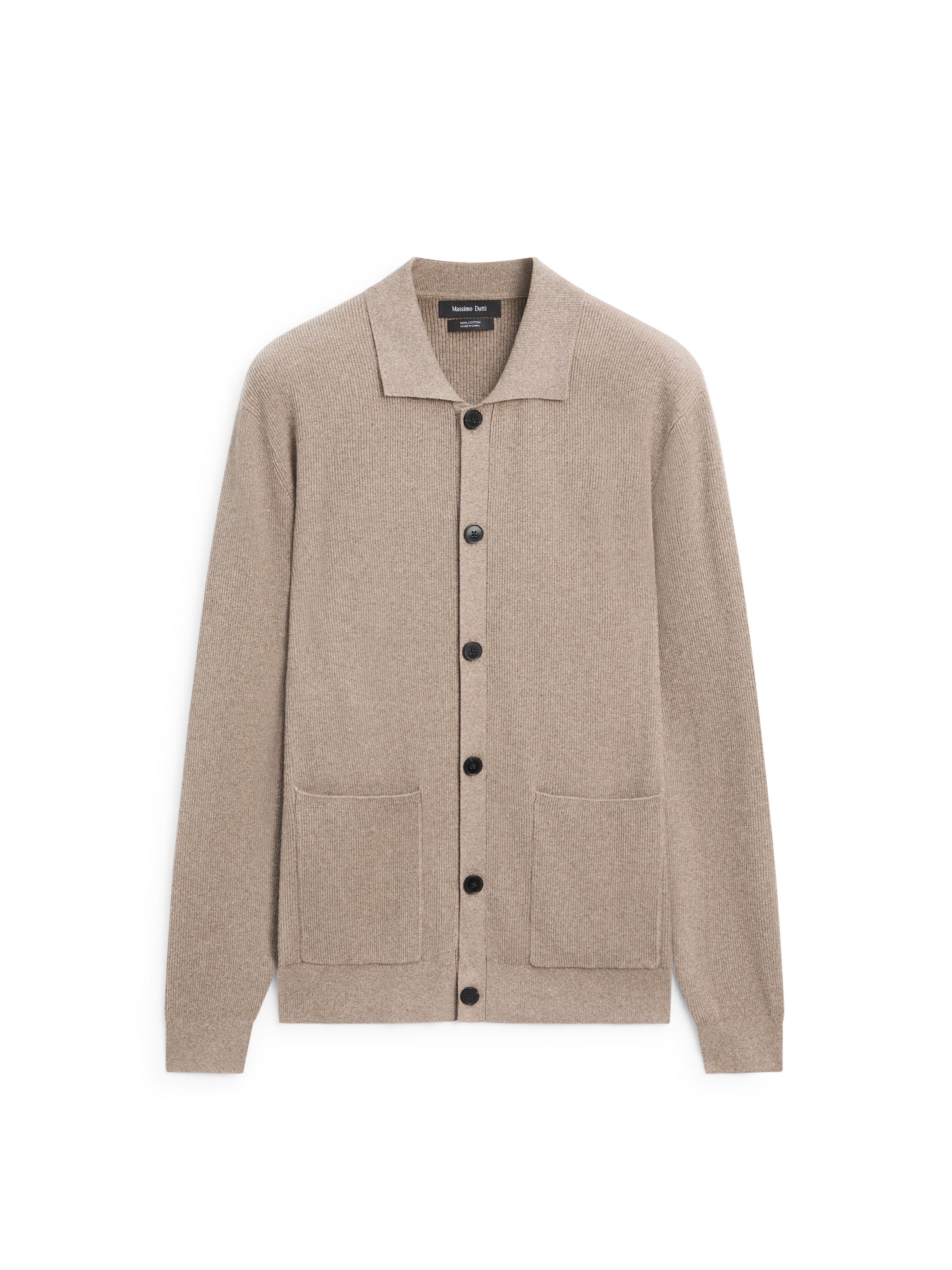 Cardigan made of knitted fabric with cotton. กระดุมหน้า. ปกโปโล. Plastron pockets.