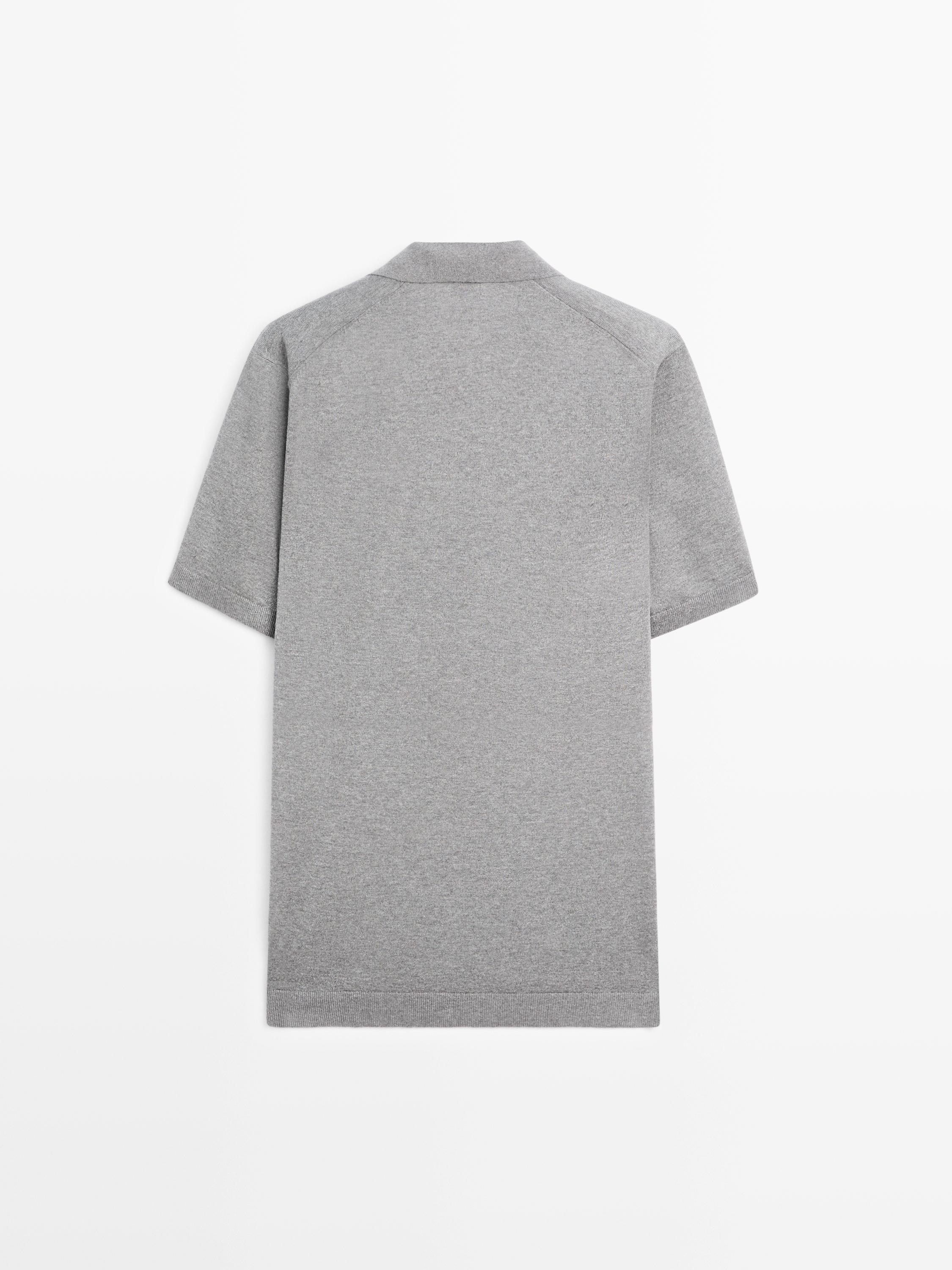 Knit short sleeve polo shirt with cotton linen