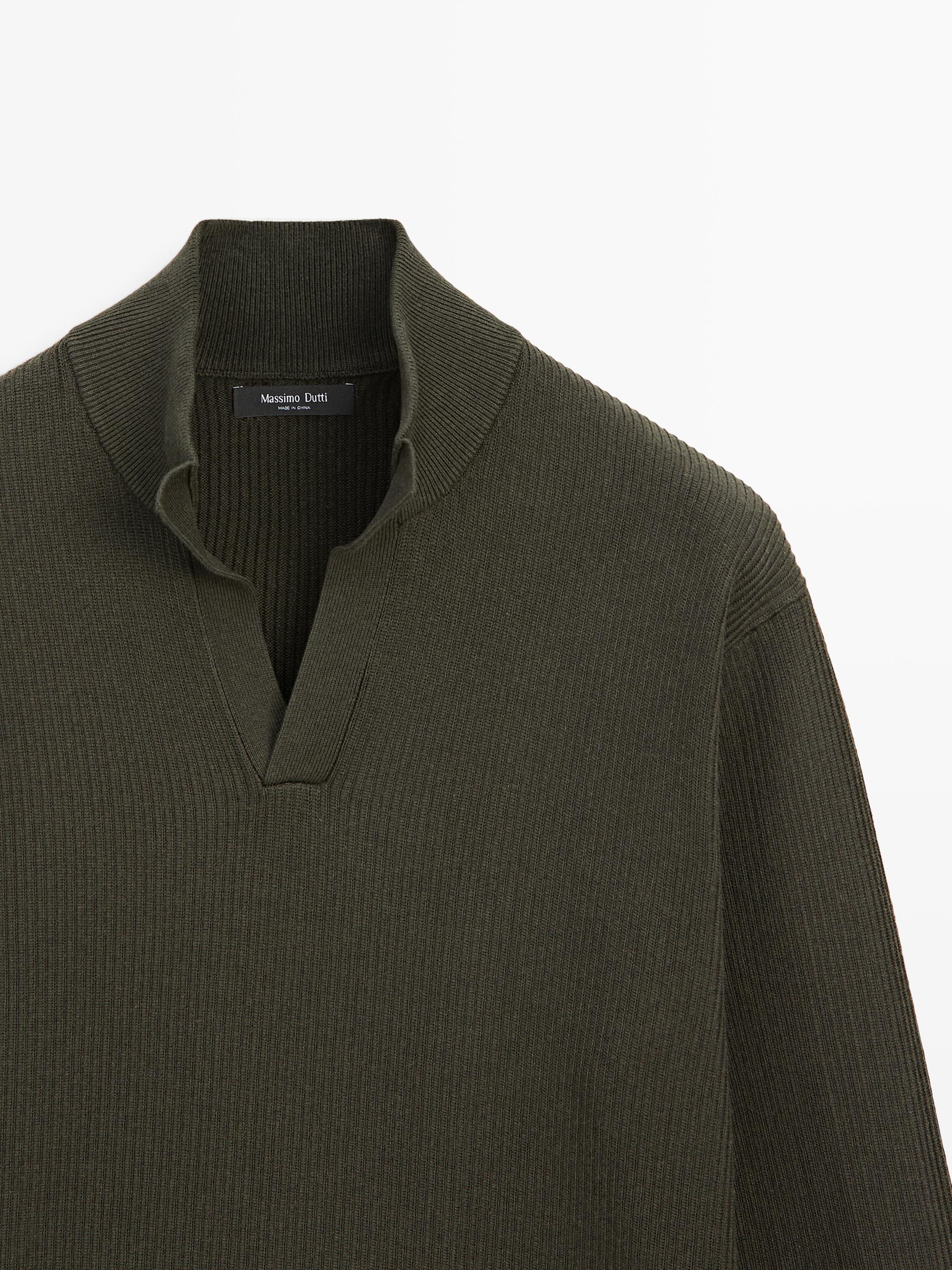 ทรงคอเต่าหรือคอปีน. V-neck. แขนยาว. Ribbed trims.