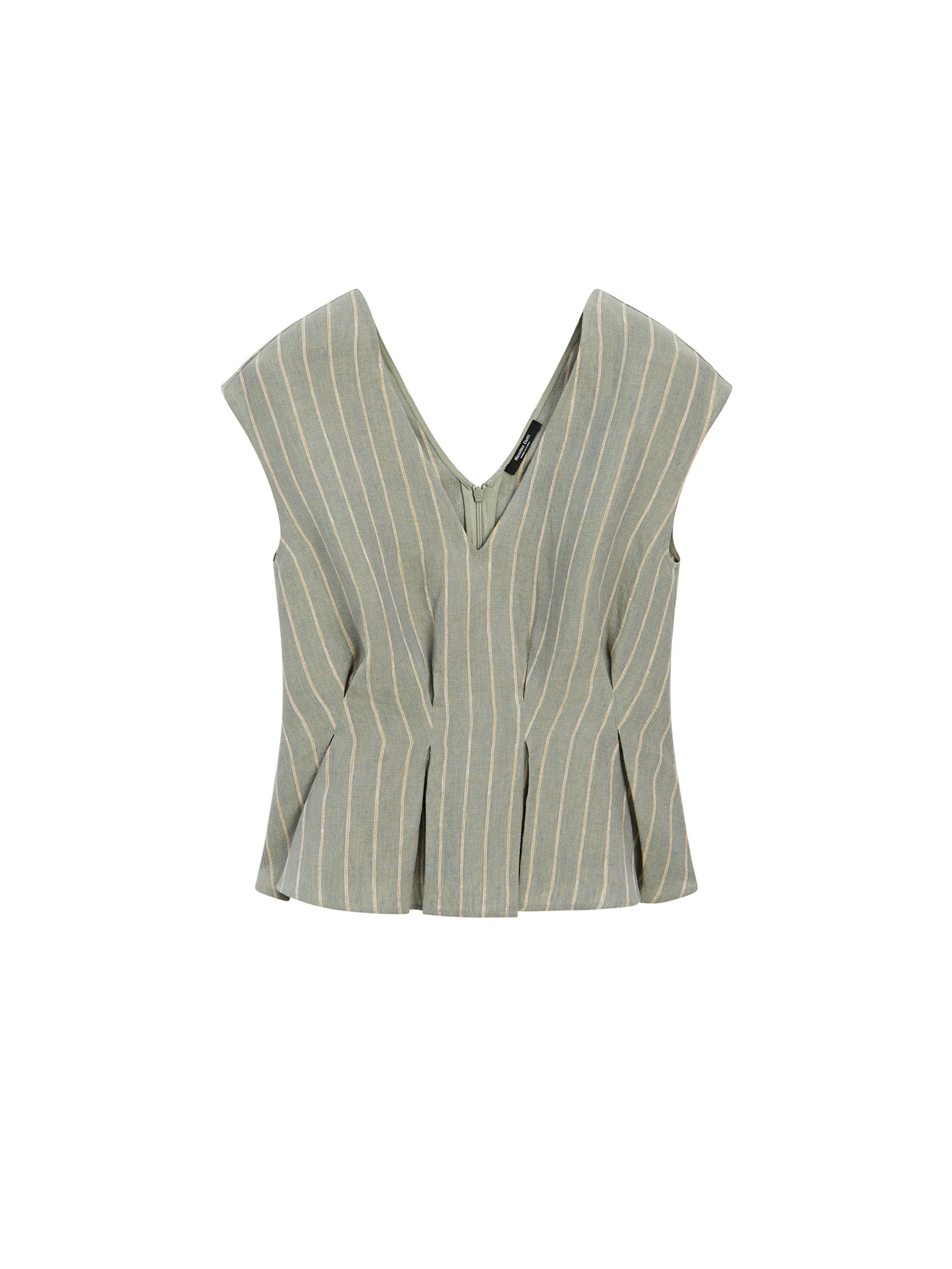 100% linen top. V-neckline at back and neckline. Printed stripes. Pleat detail on front side. A set of matching garments is available.