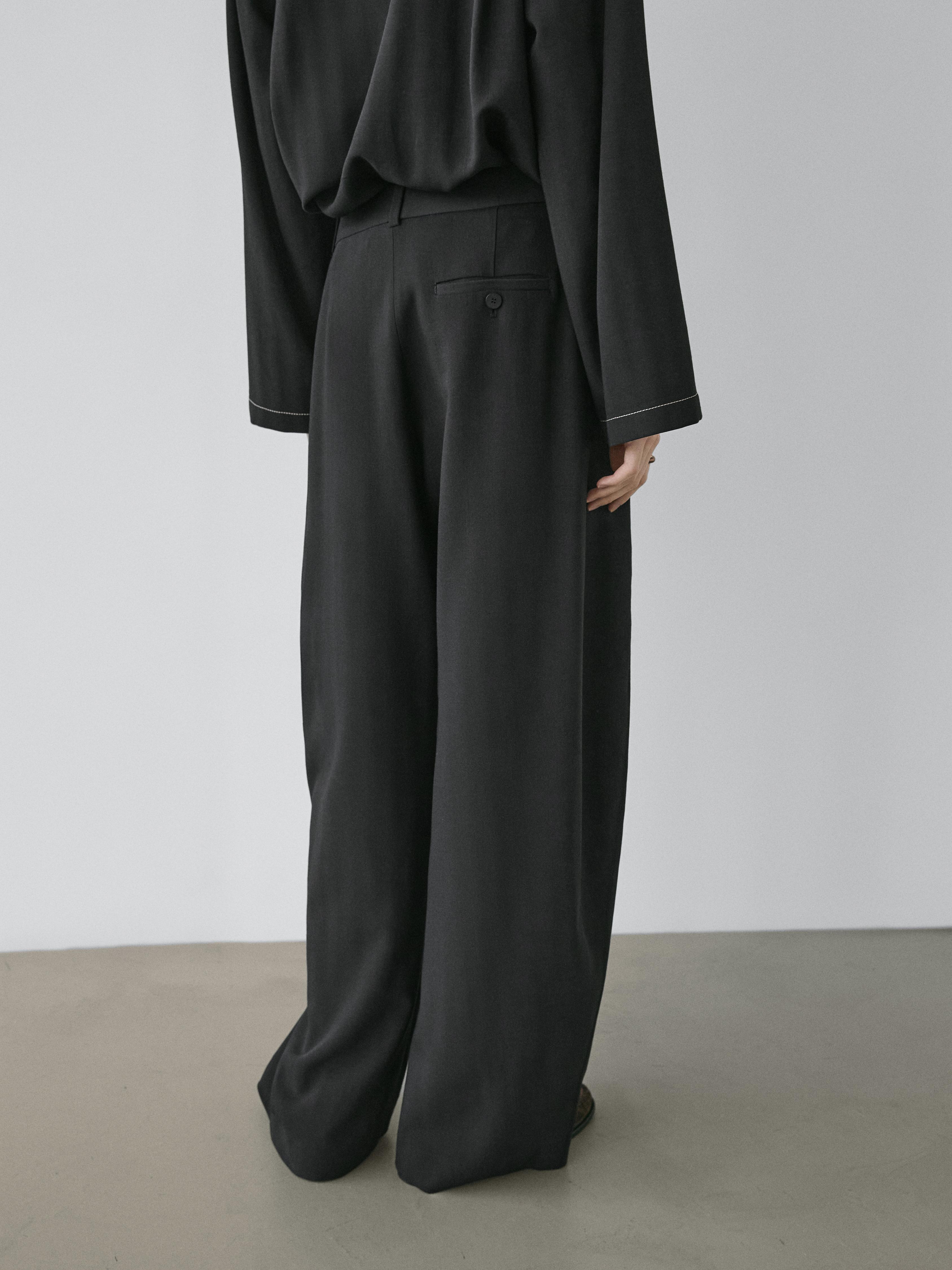 Trousers made of a wool blend. Waistband with belt loops. กระเป๋าสองข้าง. A buttoned back pocket. Central seam detail. การเย็บเข้ารูปด้านหน้า.