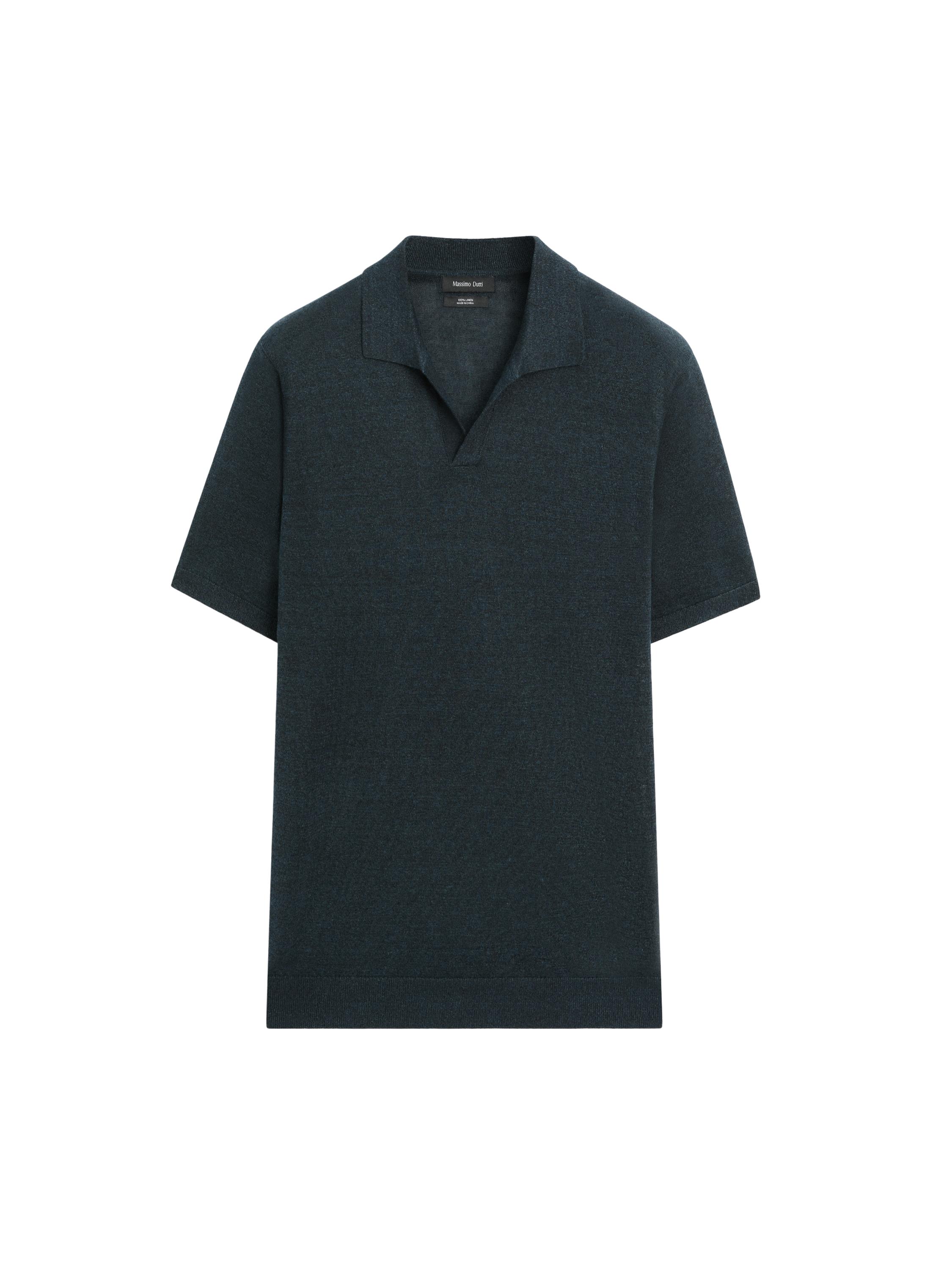 %100 keten triko kumaş polo t-shirt. Geniş katlı yaka. Kısa kol. Fitilli kumaş .
