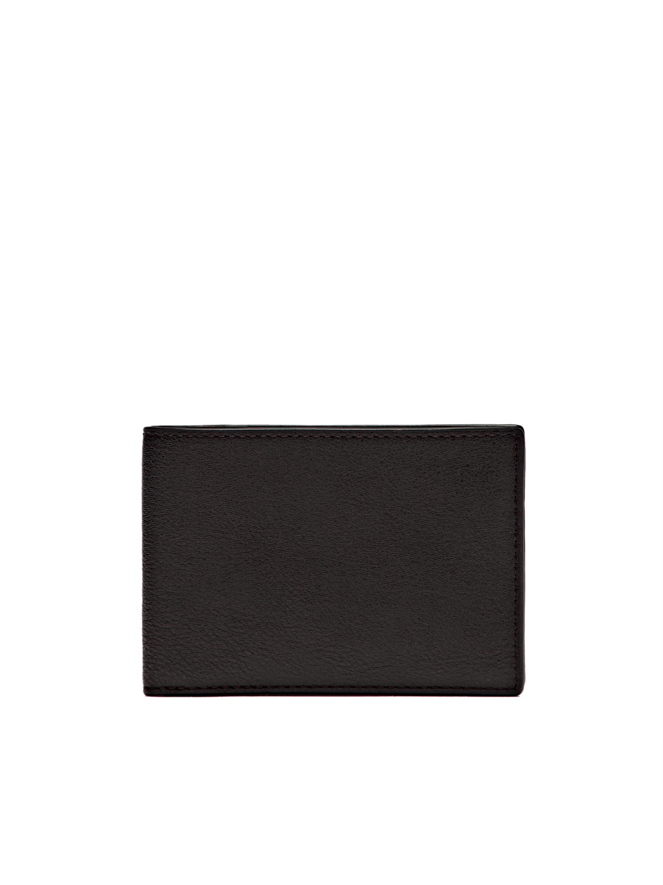 Napa deri yüzeyli sığır derisi yatay cüzdan. Banknot veya belgeler için iki bölmeli.