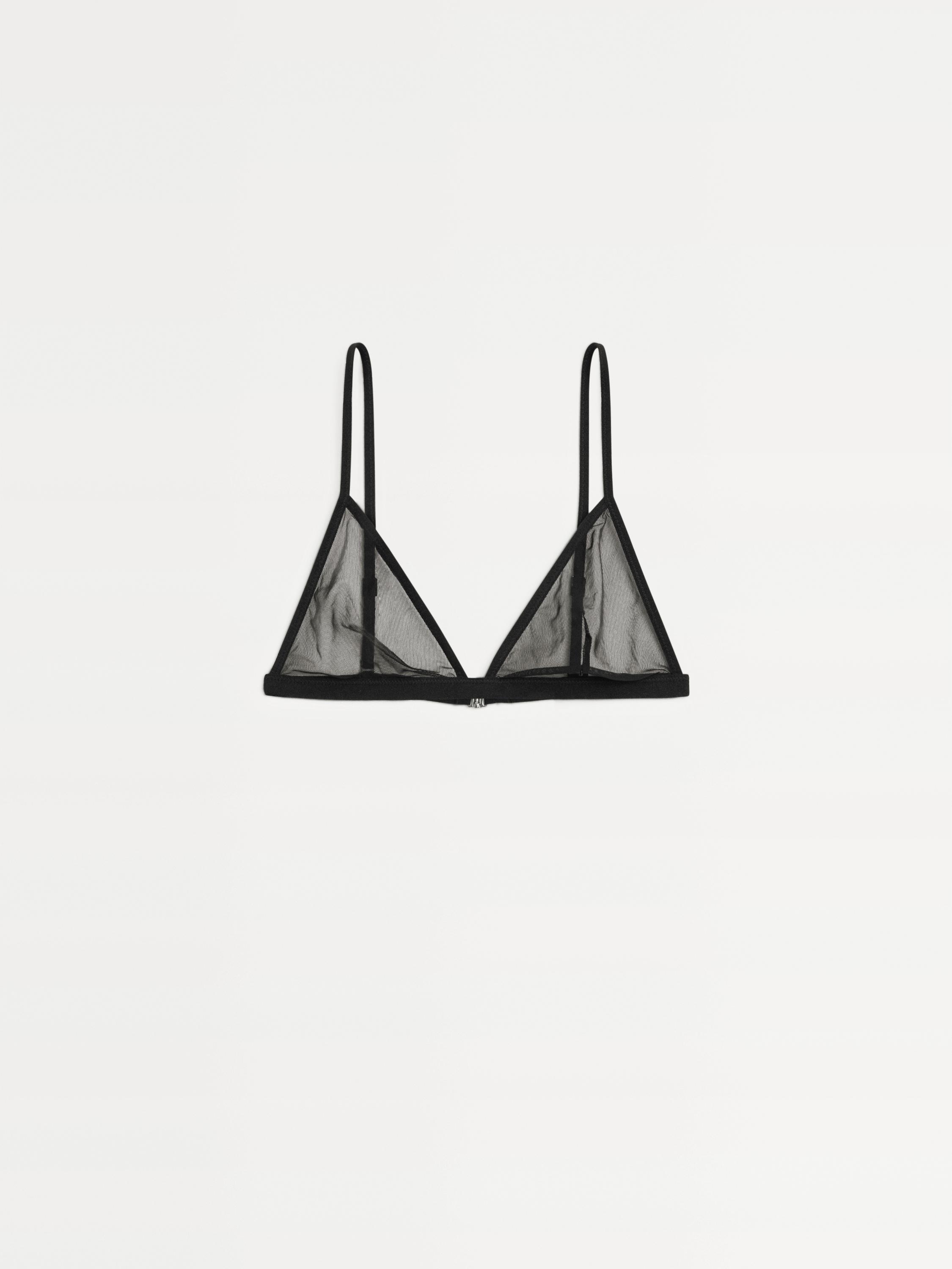 Yarı transparan file kumaş bralet. Ayarlanabilir askılı . Metal kapamalı. Vücut hatlarına uyum sağlayan elastik bant. Uyumlu giysi mevcuttur.