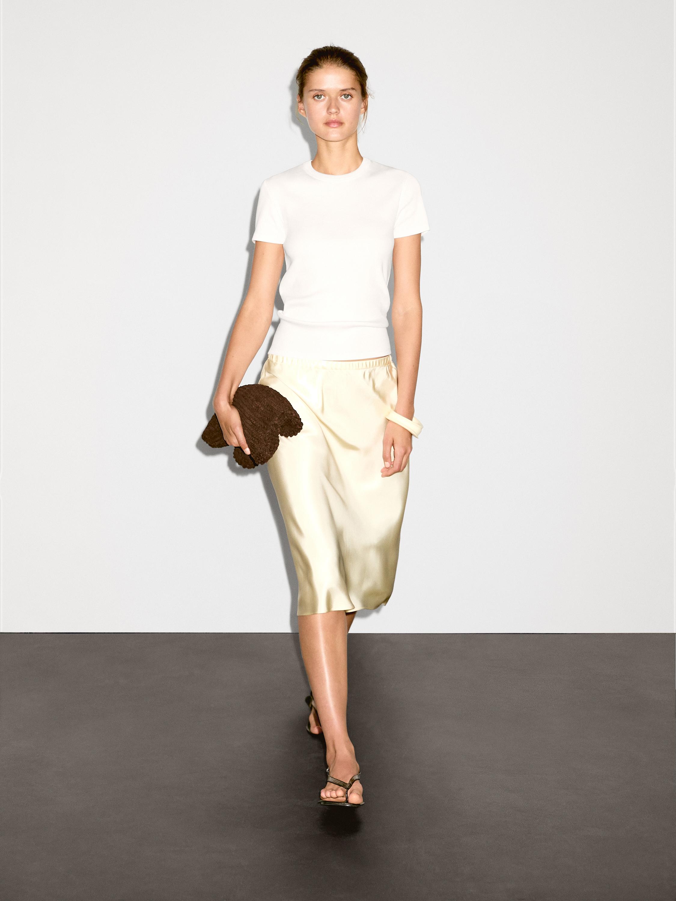 棉質混紡 T 恤. 輕巧合身剪裁,打造更清晰而纖薄的外觀. 圓領. 短袖. 羅紋邊飾 . 採用略帶彈性布料製成.