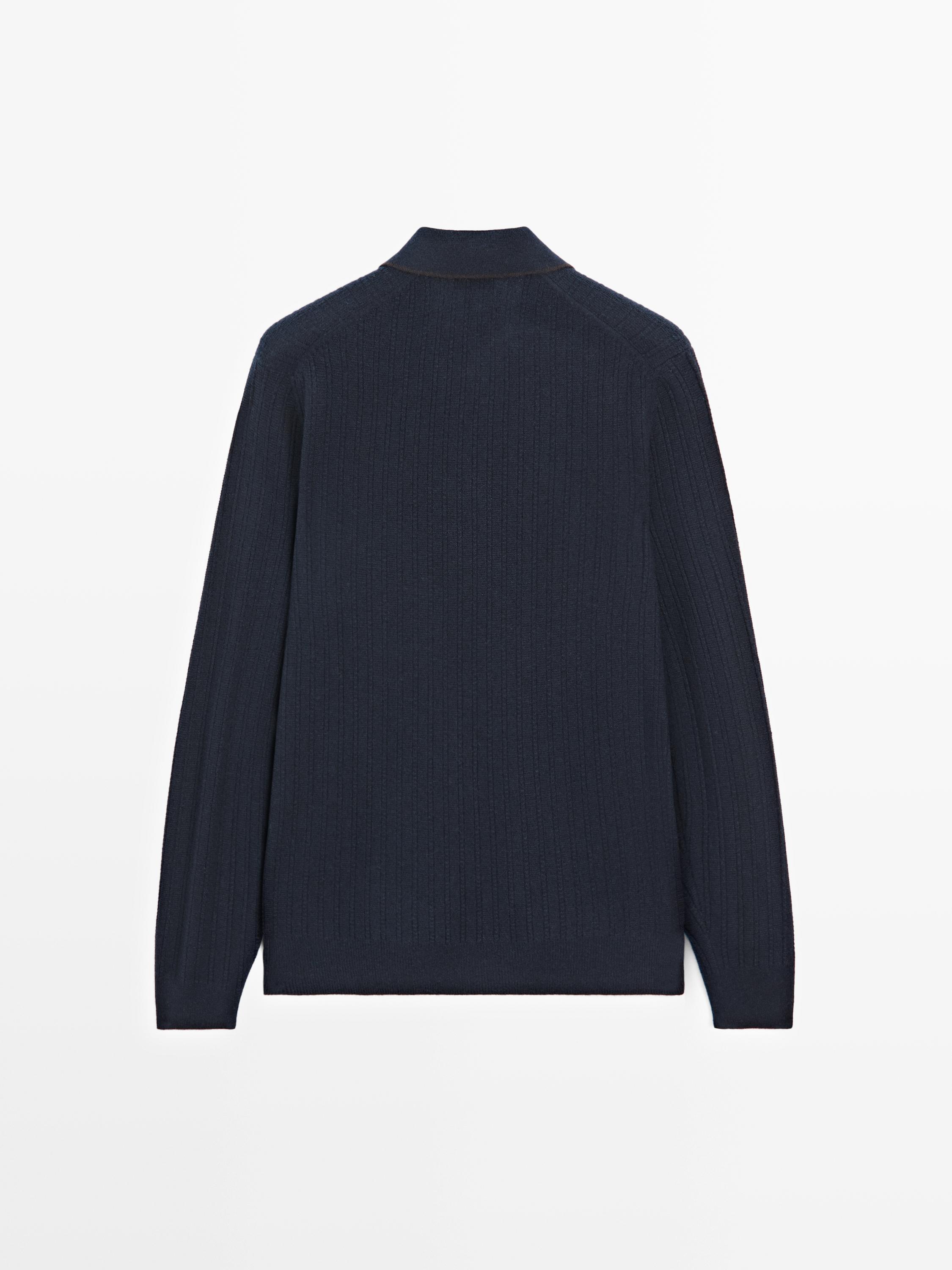 針織衫採用羊毛混紡布料製成 . 豎尖領. 長袖. 羅紋邊飾 .