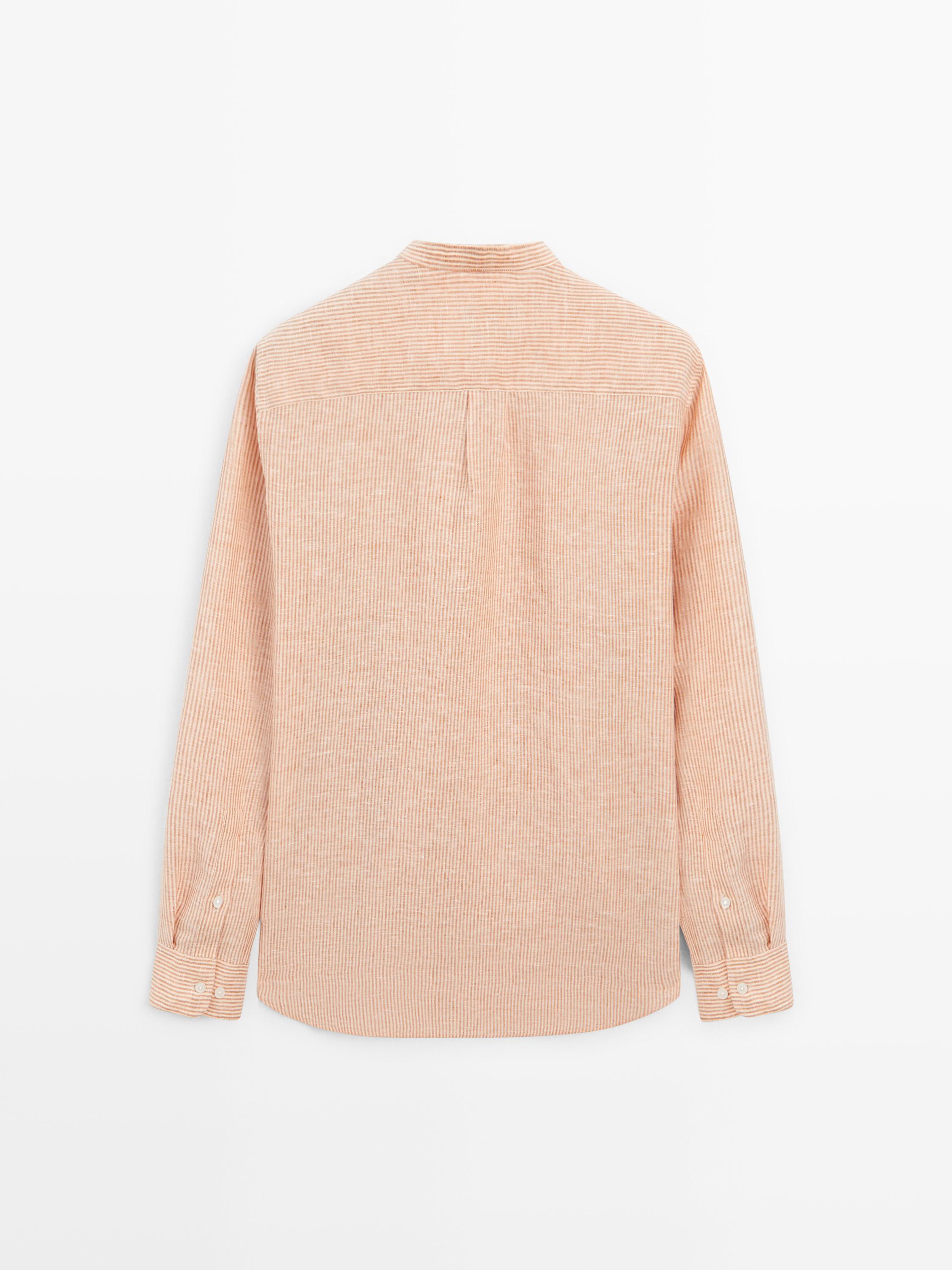 Camisa Regular fit: este fit ofrece comodidad con un poco más de holgura en el torso y los brazos aportando un estilo clásico pero relajado. Manga larga con puño abotonado. Cuello mao. Cierre mediante botonadura frontal. Detalle de hombro caído. Detalle de rayas . Confeccionado en tejido 100% lino.