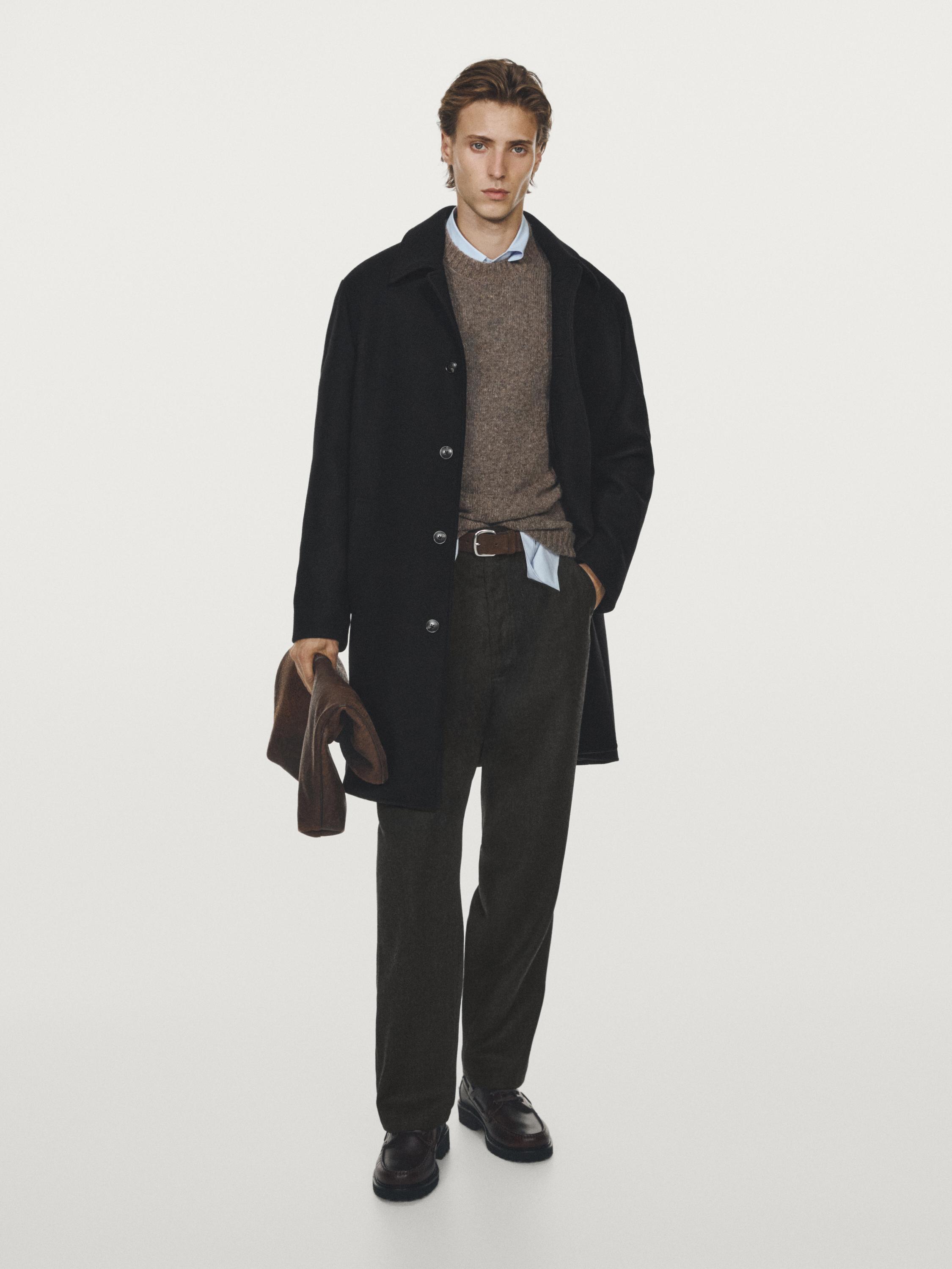 Pantalón Straight fit: presenta una silueta recta desde la cintura hasta el tobillo, sin ajustes adicionales en las piernas. Tejido de cuadrillé. Parte posterior de la cintura con goma elástica. Dos bolsillos laterales. Dos bolsillos de ojal en la parte posterior. Detalle de pinzas en la parte frontal. Confeccionado con tejido en mezcla de lana.