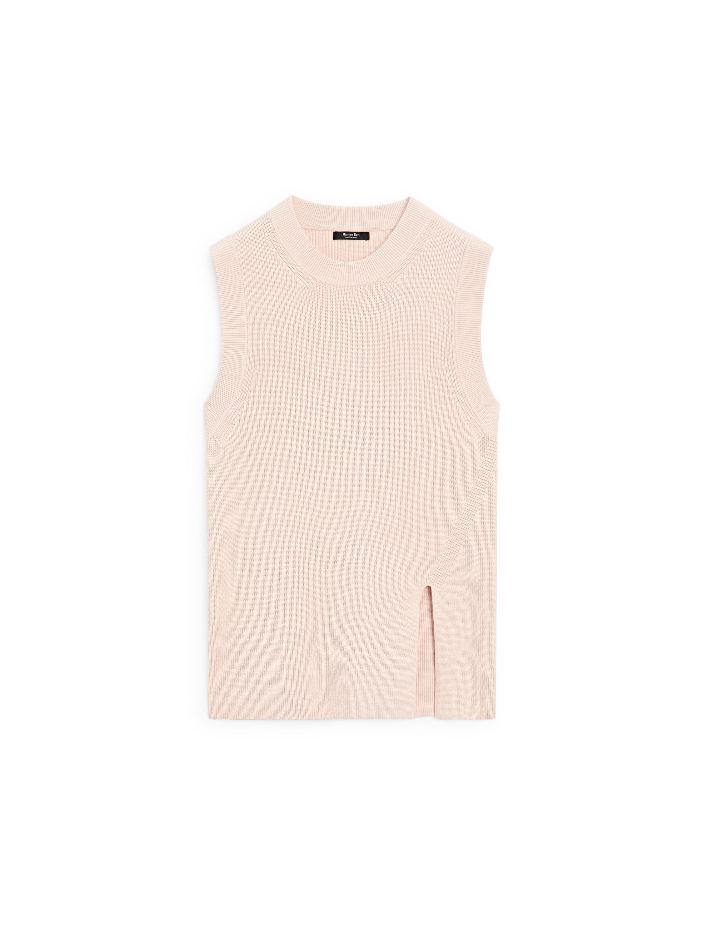 Top made of rib knitted fabric . Slightly fitted silhouette, providing a more defined and slim appearance. Crew neck. Sleeveless. Front opening.