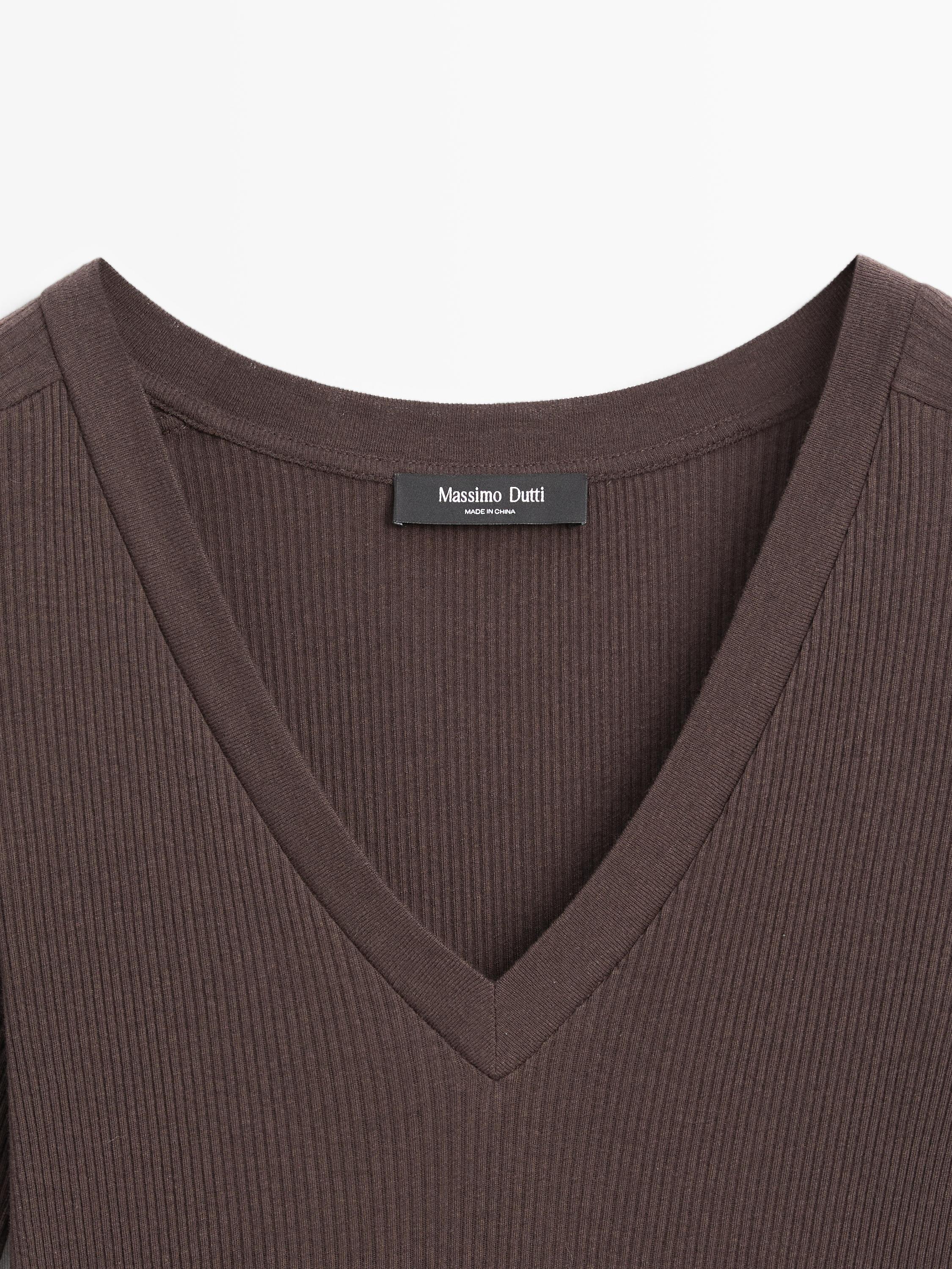 Áo phông cổ chữ V có gân dài tay