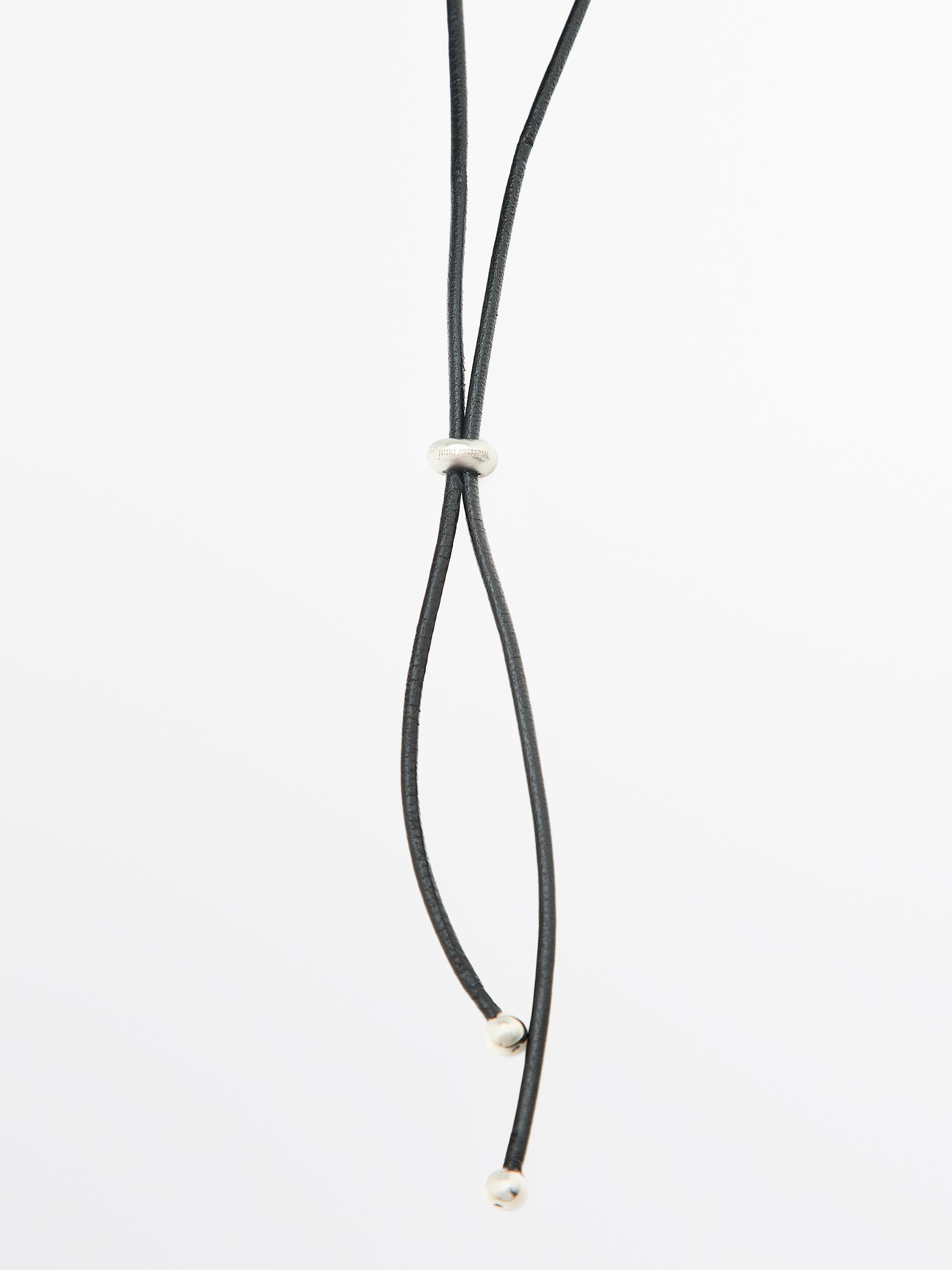 Jakë lëkure e rregullueshme. Copë metalike me lëkurë deleje. Mbyllje e rregullueshme. Detaj: përfundon me pjesë të vogël metalike .